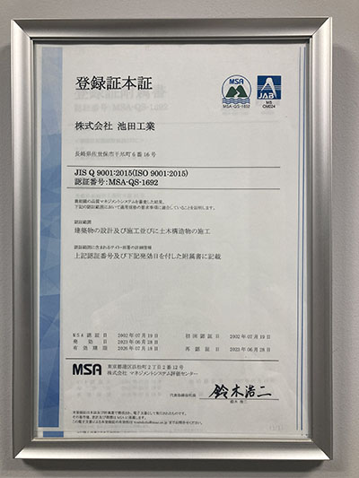 国際的基準に基づいたマネジメント体制(施工品質の向上、環境負荷の低減、安全管理の強化)の構築。